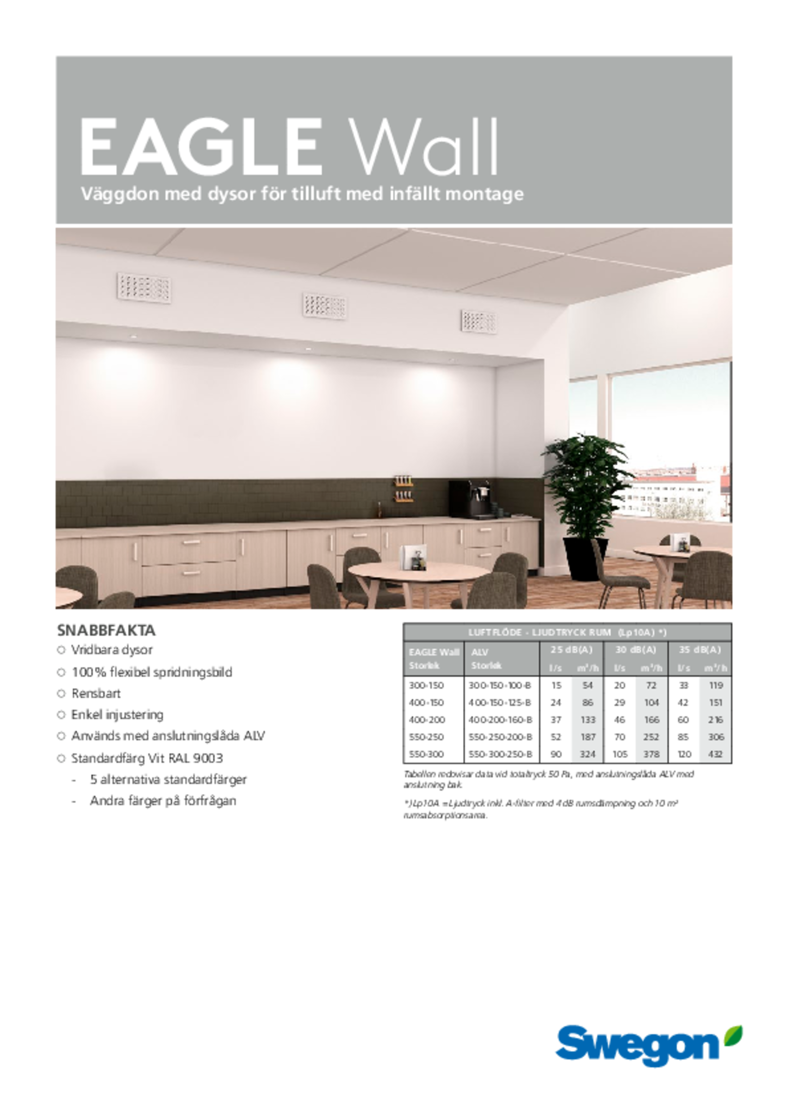 | Väggdon med dysor för tilluft med infällt montage (pdf 929.04kB) | EAGLE Wall c | Teknisk katalog | |
