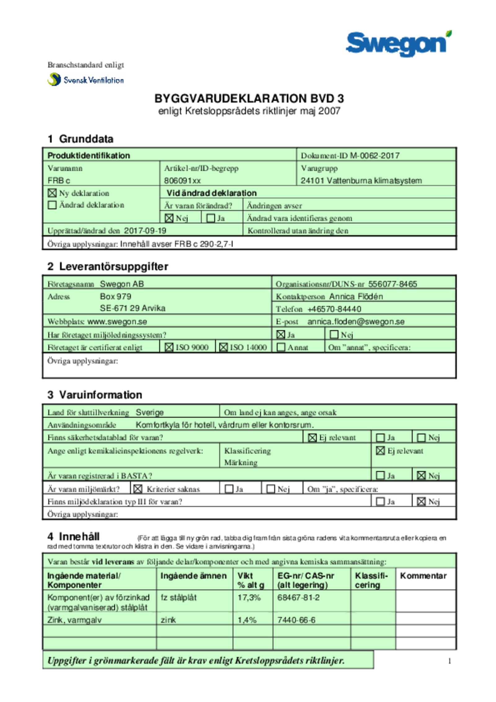 | Byggvarudeklaration (pdf 97.06kB) | FRBc | Kvalitetsdokument | |