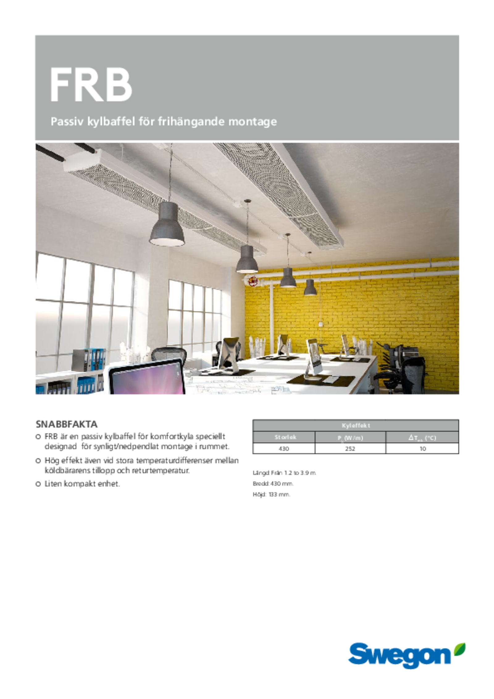- FRB är en passiv kylbaffel för komfortkyla speciellt designad för synligt/nedpendlat montage i rummet.