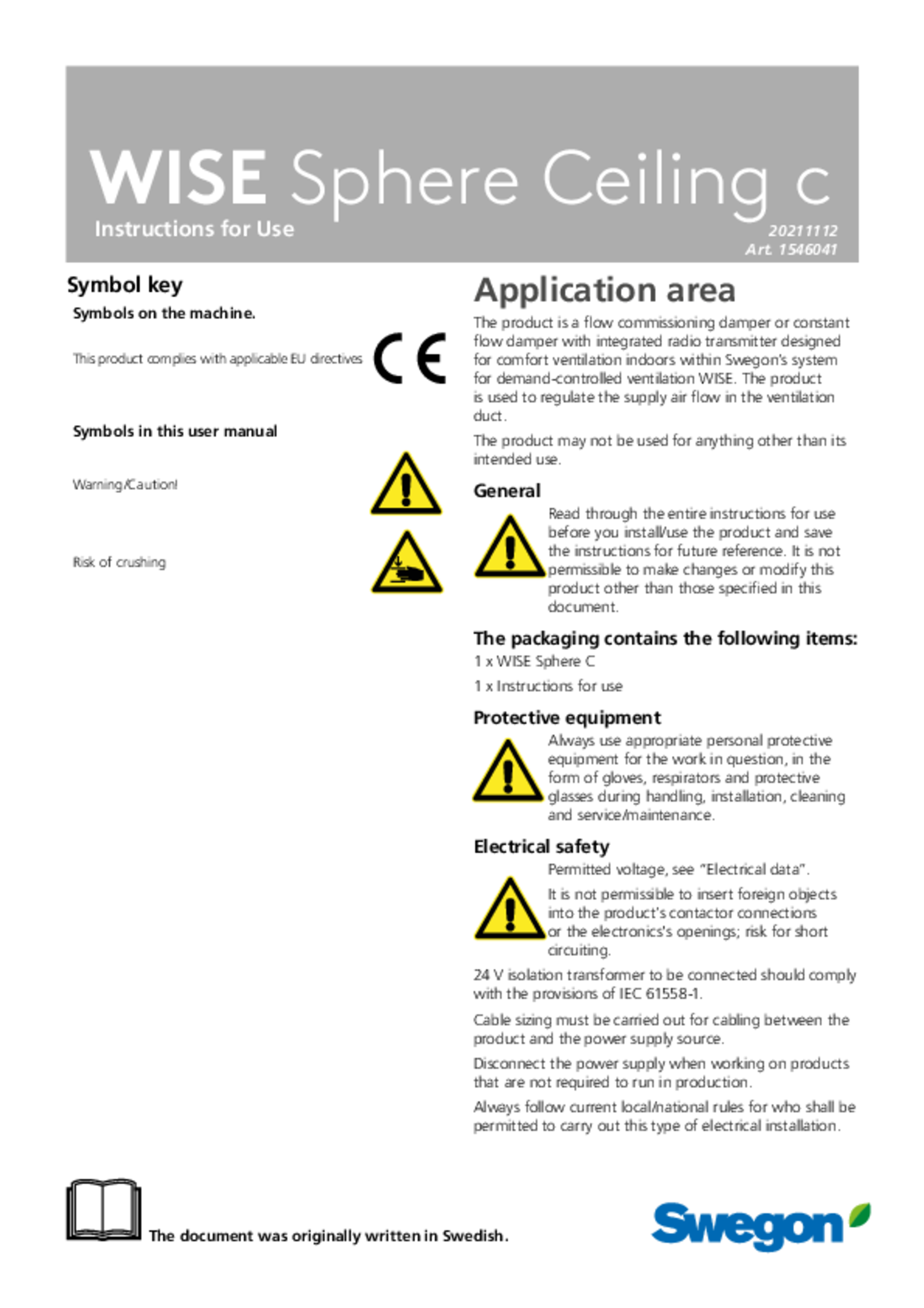 - Designed for demand-controlled ventilation of premises with a varying load.