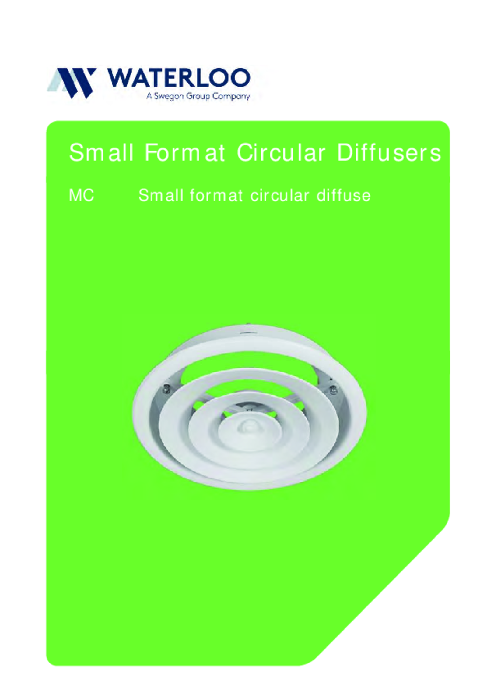 The MC diffuser has been designed for both supply and exhaust applications requiring compact circular diffusers; unlike conventional high aspiration diffusers the MC has a small overall to neck size ratio. The diffusers are adjustable to produce horizontal or vertical air patterns.