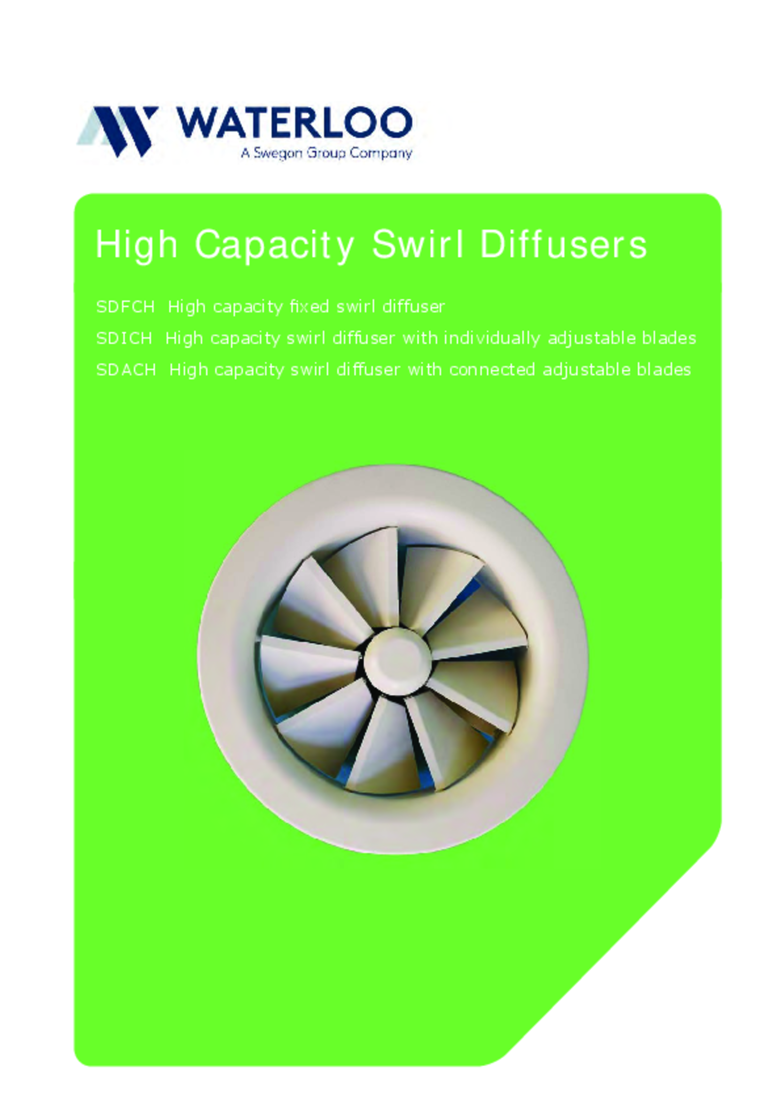 The SDACH allows a continual adjustment from providing coanda effect to vertical dumping. It is particularly useful in areas that experience a varied thermal load, for example areas that are effected heavily by the changes in season. All products in the high capacity swirl diffuser range are suitable for ceilings up to 15m.