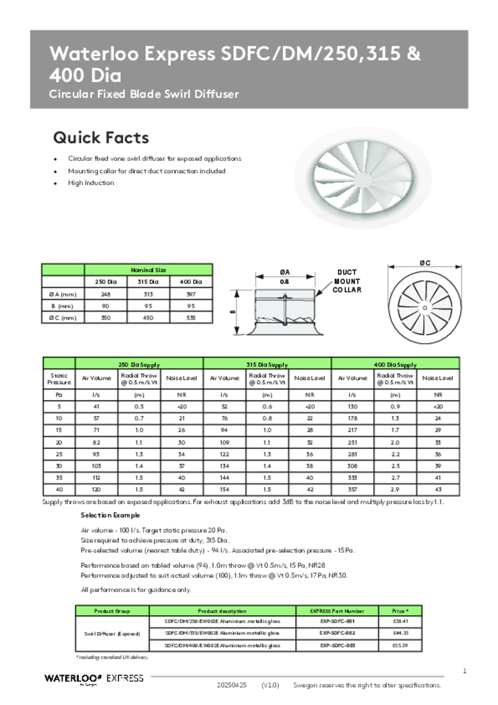 The diffusers are designed to produce a horizontal, radial air pattern with a turbulent, high induction jet characteristic and are ideally suited for applications with high heating or cooling differentials.