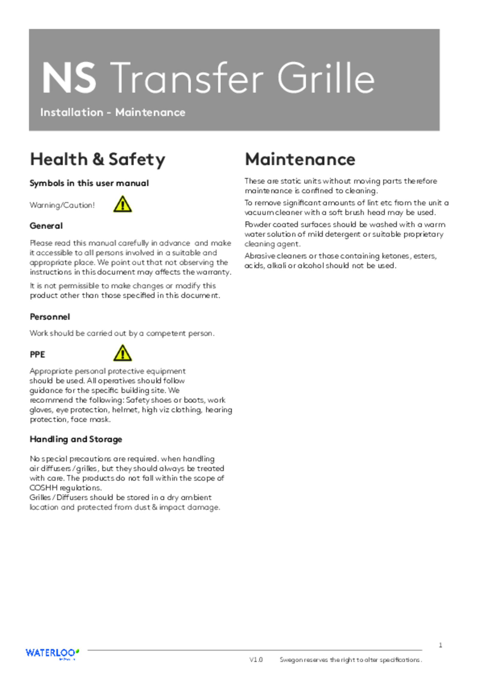 The NS Non-Vision Transfer Grille series are small format grilles with a “no-sight” feature. The Transfer Grille range is available with a wide variety of frame and fixing options to suit various design needs.